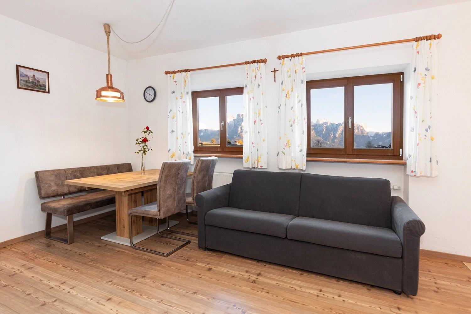Our four apartments offer an ideal mix of comfort, cosiness and closeness to nature. Each apartment is individually furnished and invites you to relax—with wonderful mountain views, a private balcony and plenty of peace and quiet. Enjoy nature, go horseback riding with our horses or explore the surroundings. For sociable evenings, a barbecue area is available, and you can park your car right in front of the door. If you fancy city life, take a trip to nearby Bolzano. Experience relaxation and adventure in one place!