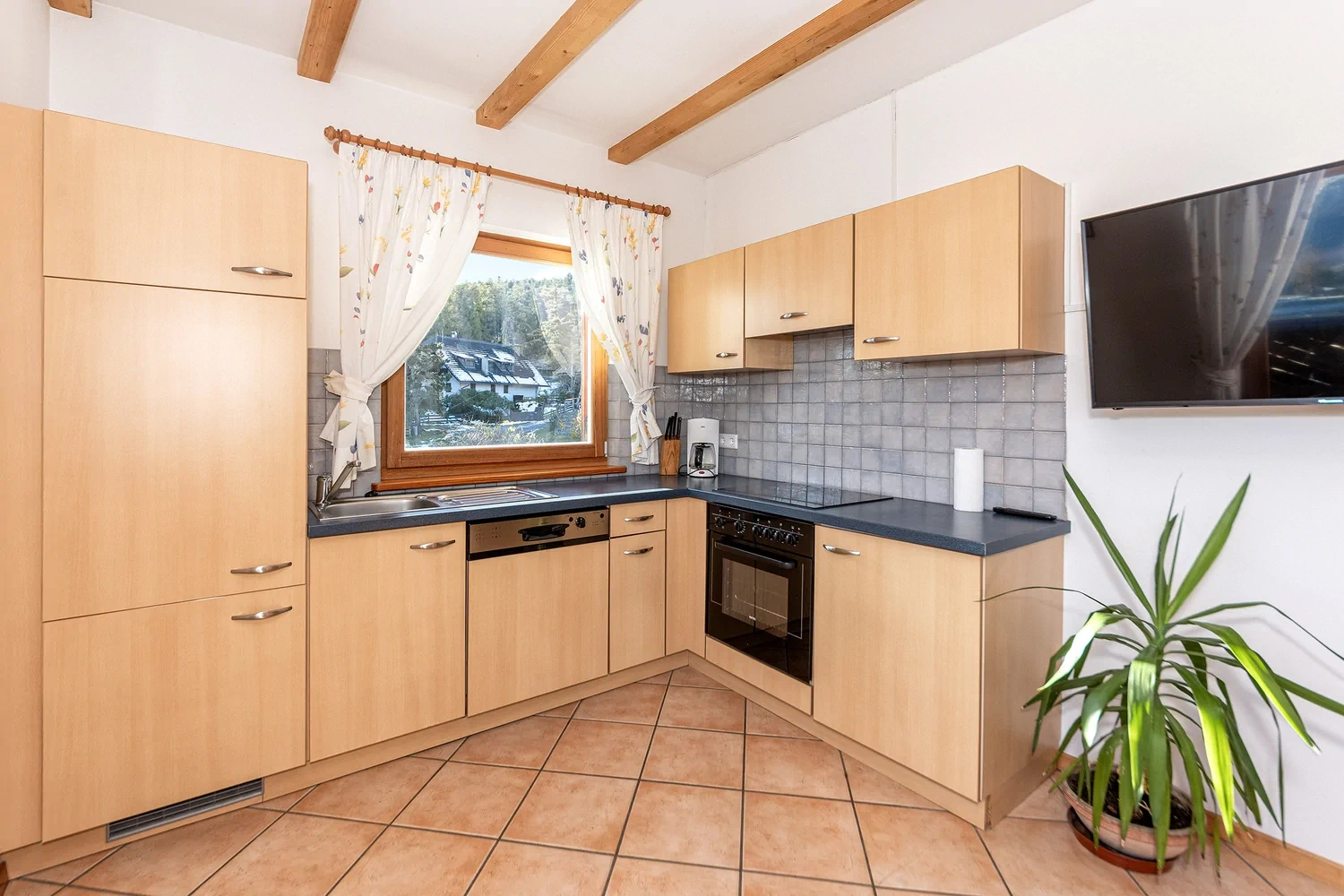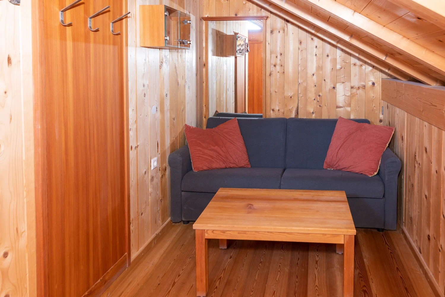 • Living room with kitchen: 4-zone ceramic hob, extractor hood, oven, fridge with freezer, dishwasher, coffee maker (filter and moka), crockery, cutlery and kitchen utensils